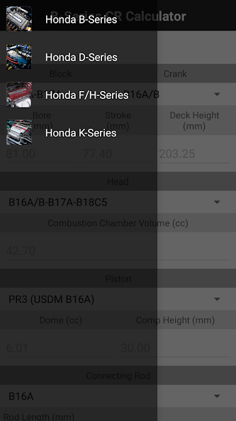 เครื่องคำนวณการบีบอัดสำหรับเครื่องยนต์ B, D, F/H, K-Series