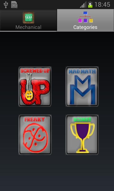 แอพนี้ยังแสดงวิชาวิศวกรรมที่แตกต่างกันภาคการศึกษา อาสาสมัครได้ถูกแบ่งออกเป็น 4 ประเภทที่แตกต่างกัน (เมาแล้ว, คณิตศาสตร์บ้า, ประหลาดและคะแนน) การจัดหมวดหมู่เฉพาะนี้ได้รับเพื่อช่วยในการตัดสินใจวิธีการจัดการวิชาที่แตกต่างกัน เคล็ดลับสำหรับการจัดการวิชาที่แตกต่างจากสิ่งที่ยากที่สุดไปจนถึงวิธีที่ง่ายที่สุดพร้อมกับหนังสือที่ดีสำหรับแต่ละวิชาได้รับการแนะนำ