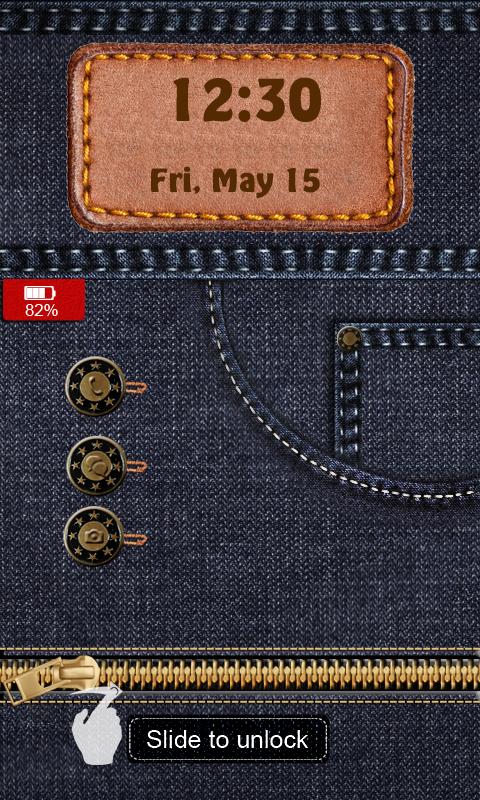 Jeans Lock Screen ให้ล็อคตัวเลื่อนที่ดีที่สุดที่สไลด์เพื่อปลดล็อค