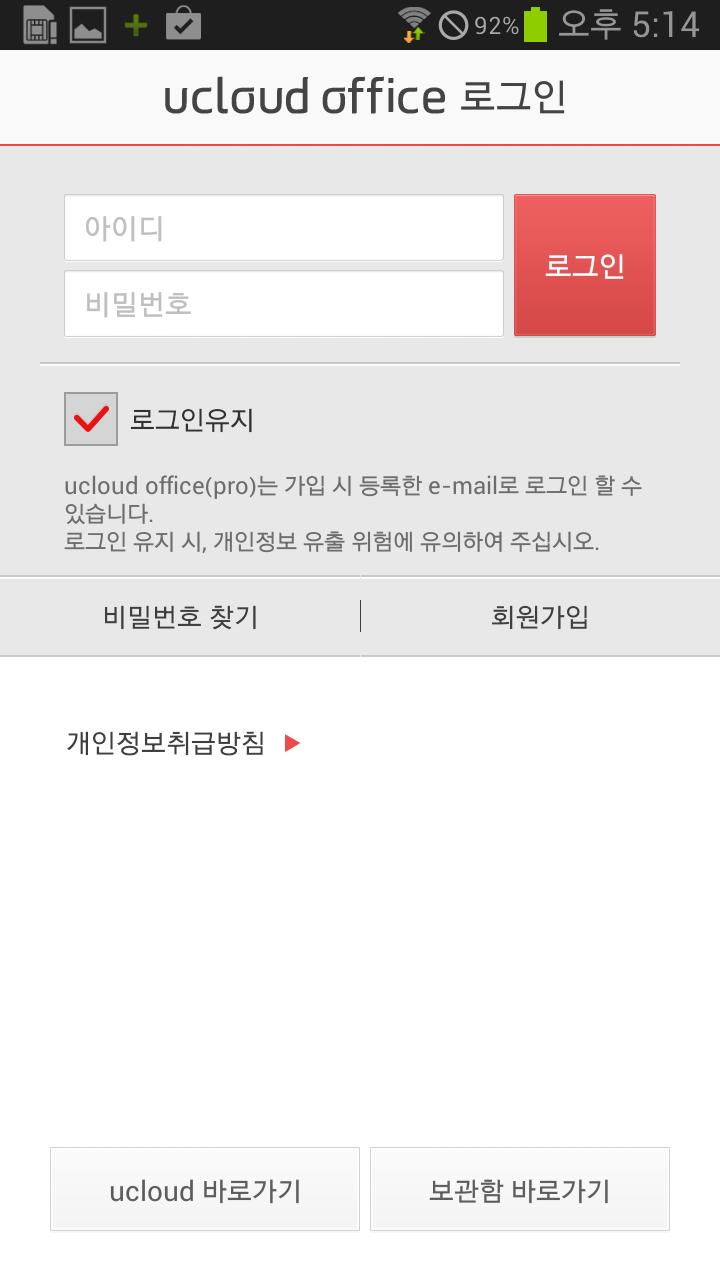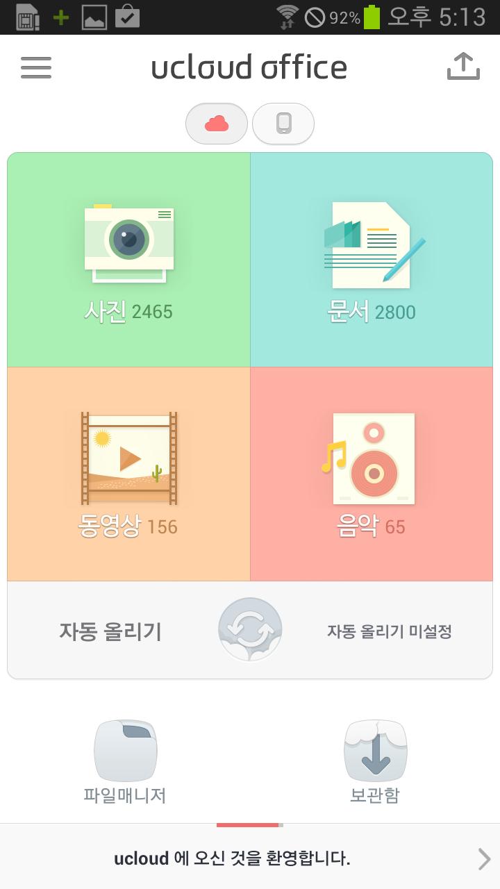 สำนักงาน UCLOUD สำหรับสมาร์ทโฟนที่มีอยู่ในบริการแอพมือถือ