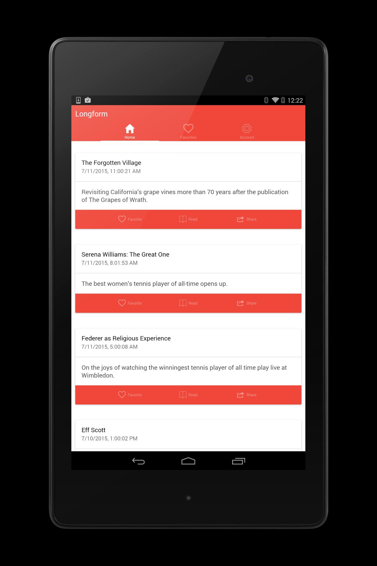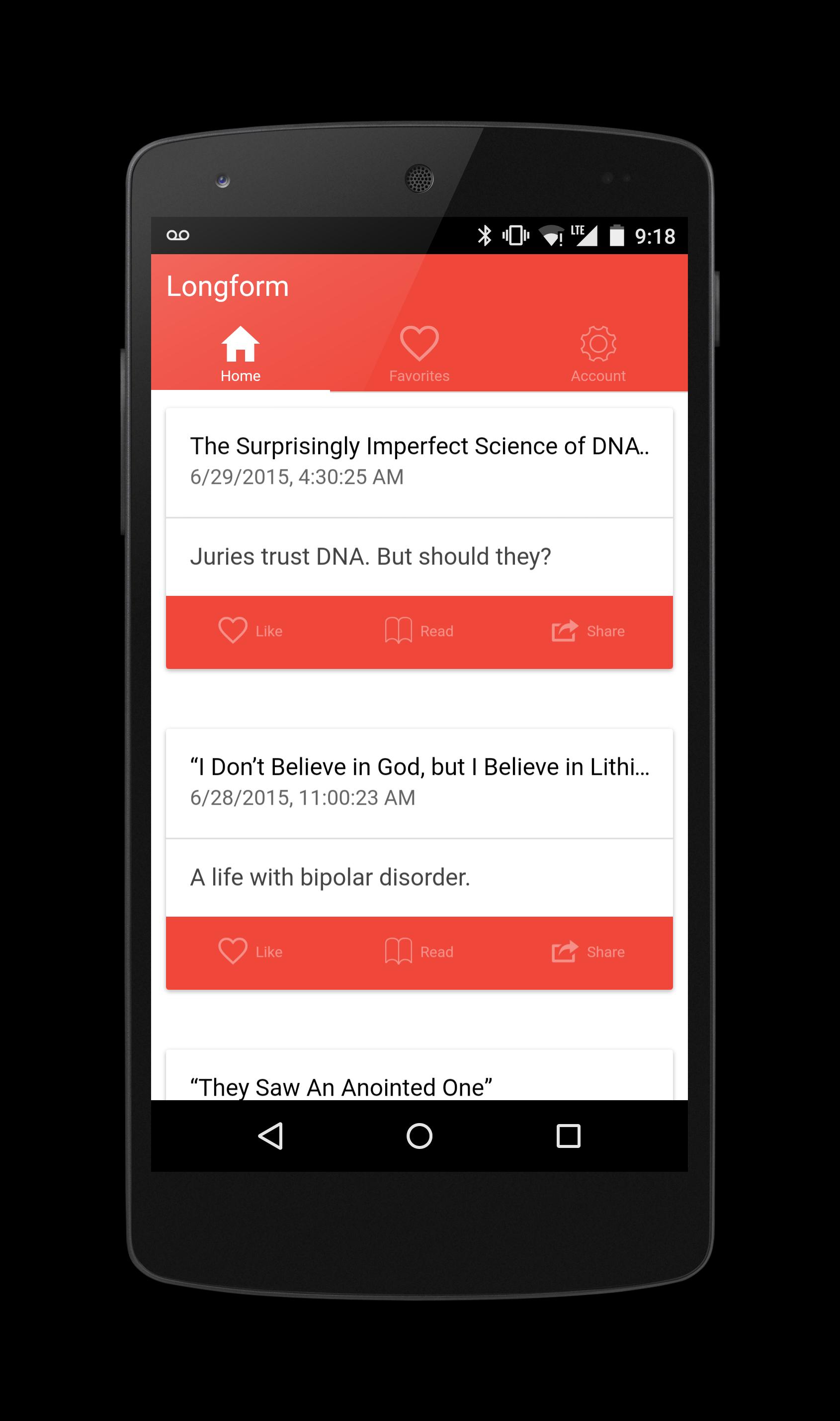 Longform .org แนะนำสารคดีใหม่และคลาสสิกจากรอบ ๆ เว็บมากกว่า 2,000 คำ ใช้แอพนี้เพื่อเรียกดูรายการโปรดและแบ่งปันคำแนะนำบรรณาธิการของ Longform .org