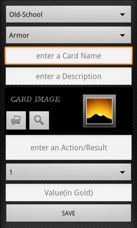 ให้คุณสร้างไพ่การเล่นบทบาทที่กำหนดเอง ป้อนคำอธิบายการ์ดที่กำหนดเองของคุณจากนั้นเลือกตัวเลือกอื่น ๆ เช่นประเภทการ์ดและเค้าโครง เลือกภาพการ์ดจากแกลเลอรีโทรศัพท์ของคุณหรือค้นหาภาพโดยใช้แอปพลิเคชันในตัวเบราว์เซอร์ในตัว