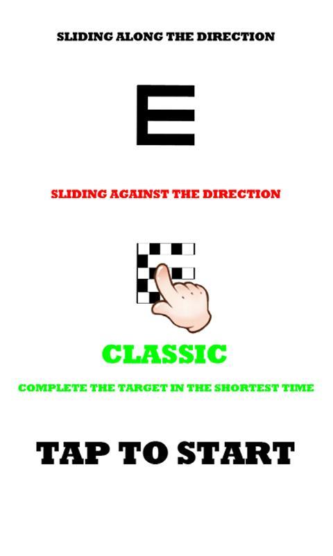 Slide One Slide คือการทดสอบความคล่องตัวของนักเล่นเกมและเกมสร้างสรรค์ จำการทดสอบการมองเห็นได้หรือไม่? ตาม "E" ในทิศทางการเปิดของกิจกรรมของนิ้วจะผ่านไปมิฉะนั้นล้มเหลว! สีพิเศษอย่างระมัดระวัง "E" โอ้คุณต้องเลื่อนนิ้วของคุณไปในทิศทางตรงกันข้าม เวลาเร่งด่วนอย่าลืมใช้จรวดเพื่อทำลายหินทั้งหมดช่วยคุณ แบ่งออกเป็นคลาสสิก, อาร์เคด, เวลาสามโหมดทดสอบผู้เล่นปัญญา! มาเถอะการมองเห็นด้วยกัน!