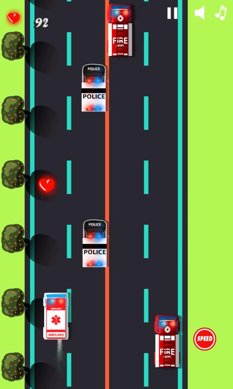 Drive your cool emergency vehicle through highway traffic!! Burn up the road!!