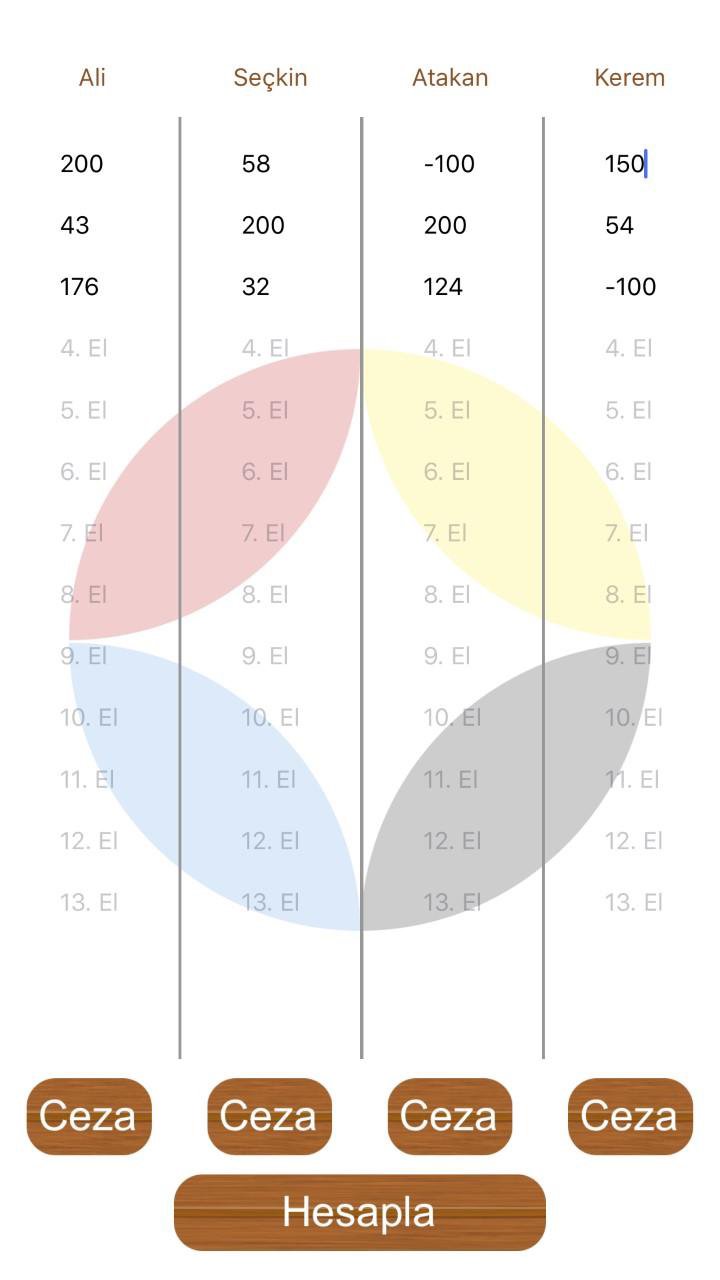 在 101 Okey 游戏中计算分数从未如此简单。计算结果时您将不再需要使用纸和笔。您可以在手机上记下玩家每轮比赛的得分,并在游戏结束时随时查看结果。注销球员的处罚是很容易的。您可以使用惩罚按钮编写惩罚。您按下名称下方的惩罚按钮并选择惩罚,或者您可以手动添加惩罚。