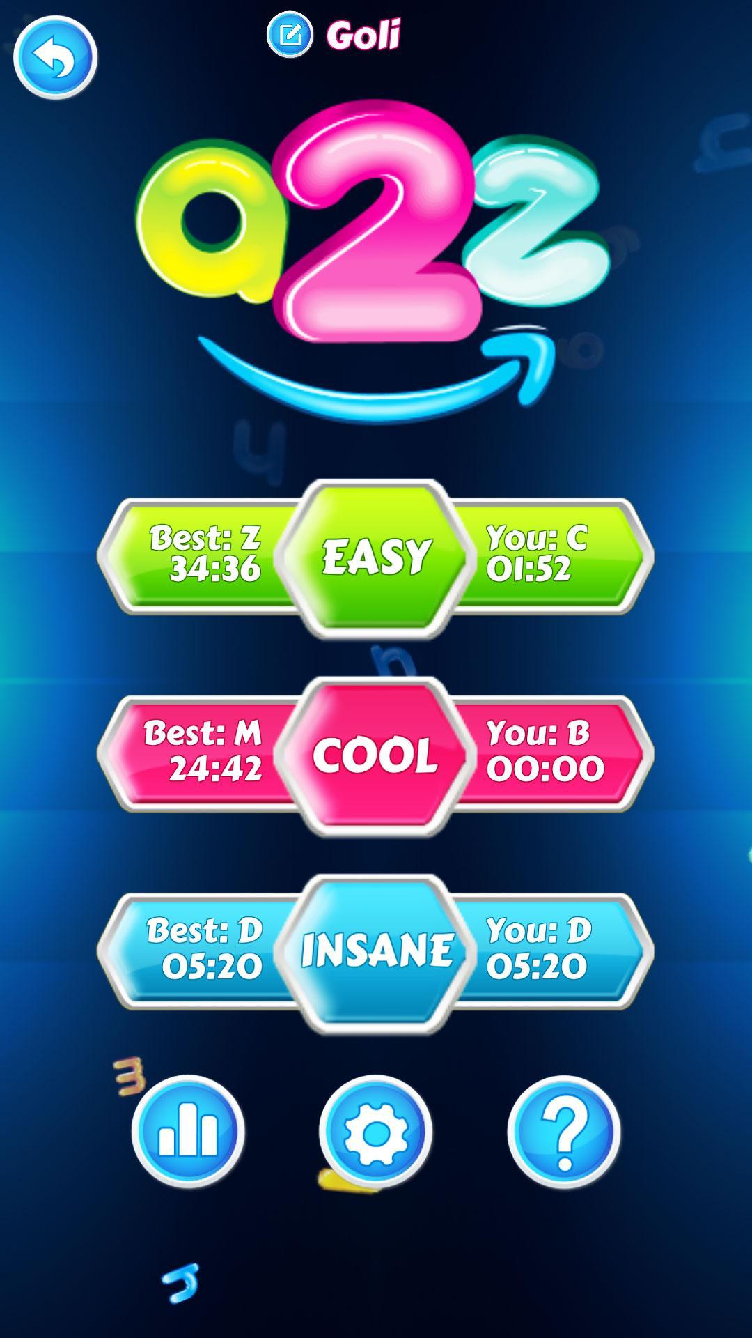 游戏听起来很简单,但是要当心,在您之前设置的任务绝非易事。但是,游戏很有趣,具有挑战性且完全上瘾。不相信我们吗?亲自尝试!看看您是否可以在所有三个级别上击败游戏:简单,酷和疯狂。如果这是一个很大的话,您可以做到这一点,然后尝试在最短的时间内击败游戏。在排行榜中挑战您的朋友:您会成为掌握所有ABC的人吗?