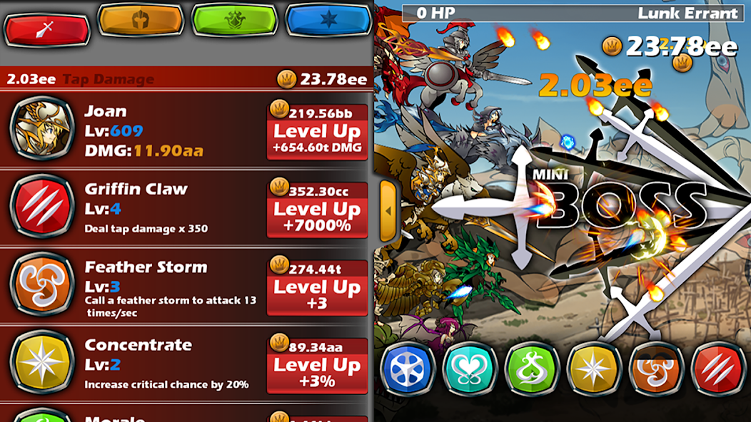 点击以杀死巨大的怪物,您可以收集钱,召集女神并升级它们。在学习新技能之后,您可以继续挑战更强大的怪物。