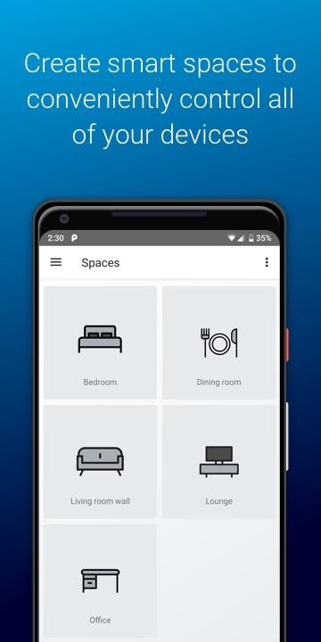 您可以使用AONE应用程序打开,关闭并调暗灯光,并能够将灯光添加到空间和设置单个灯或灯组的时间表。可以在某些时间编程灯光,并帮助您管理房间中的心情,同时看电影,再到不在家里时提供安心。