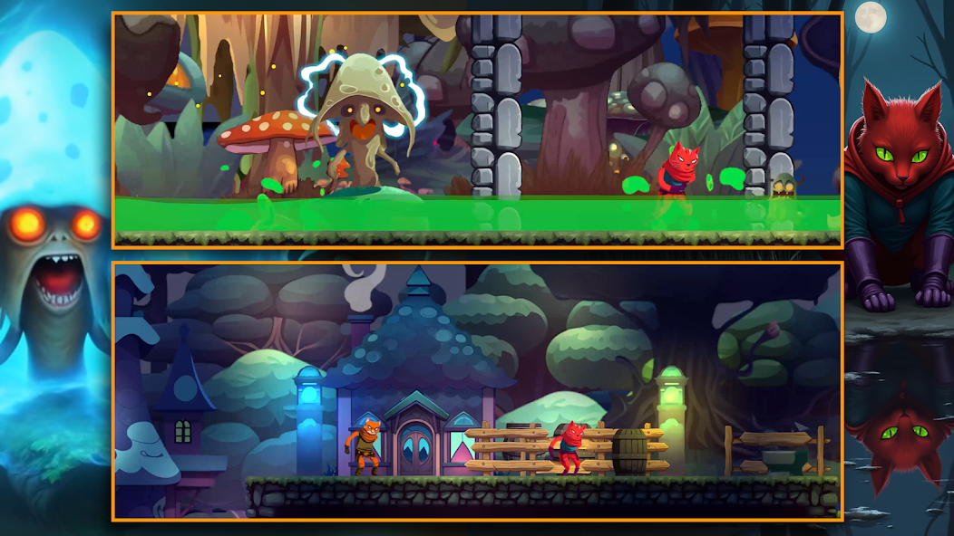 通过Cat Journey深入冒险!加入红猫,以寻求拯救他的姐姐在充满奇迹和战斗的世界中。玩这个2D动作平台,探索水平,与敌人战斗并击败老板。