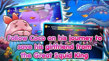 勇敢的小鱼可可(Coco)冒险陷入巨大的危险,以营救他可爱的女友,后者被伟大的鱿鱼国王绑架。许多大鱼在等待他的旅程中吃掉他。小心,不要被吃掉!在这个英雄的可可Coco the Fish!