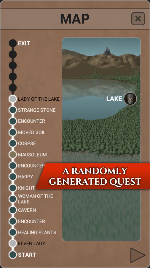 在随机产生的史诗般的史诗般的任务中扮演孤独的骑士的角色。遇到诸如神秘的陌生人,生物和旧废墟之类的未知危险的旅程要探索。