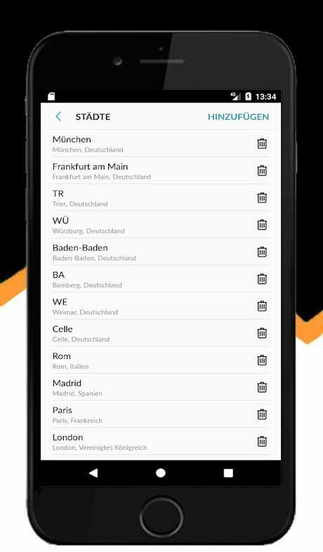 - 添加并删除一个新城市(屏幕左侧的顶部菜单)。