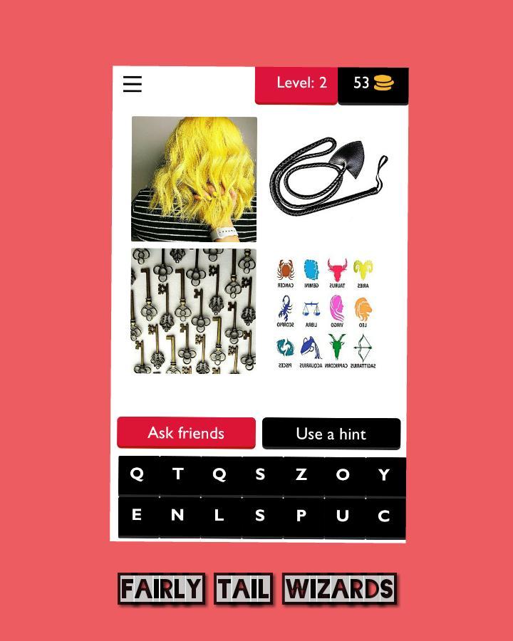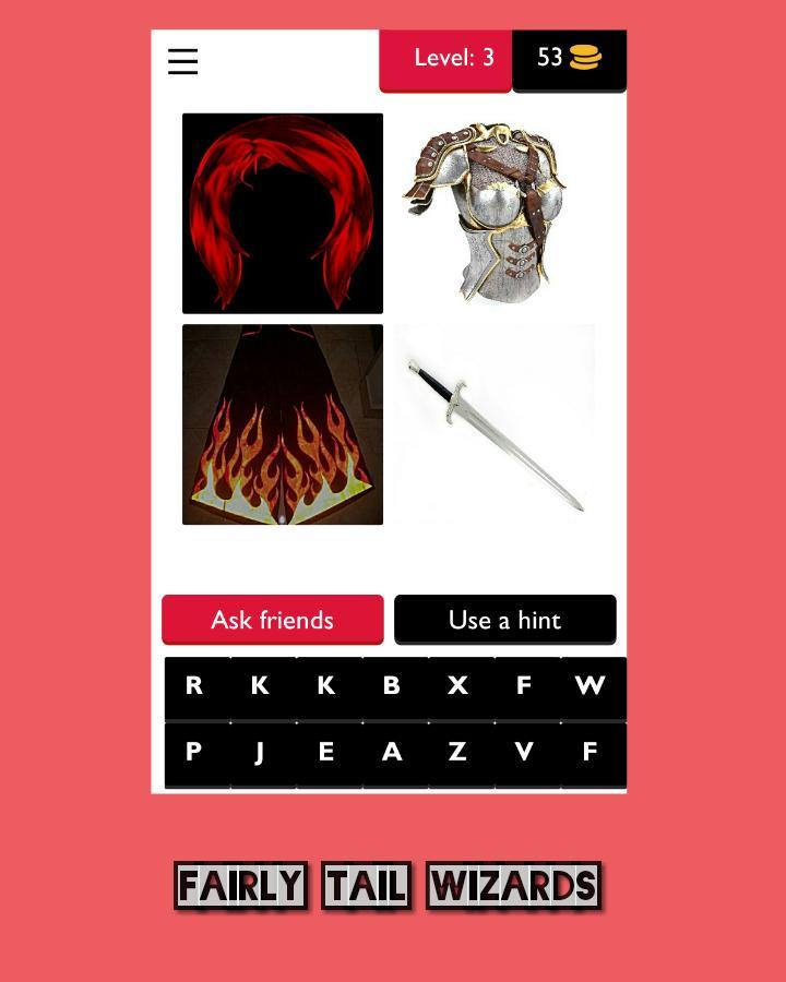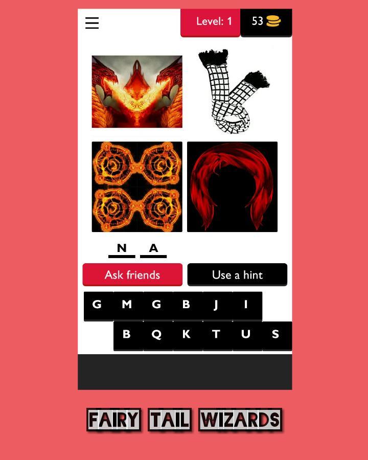 Fairy Tail Wizards为您带来了一个游戏,您可以在4张图片的帮助下猜测自己喜欢的童话尾部角色(巫师)。