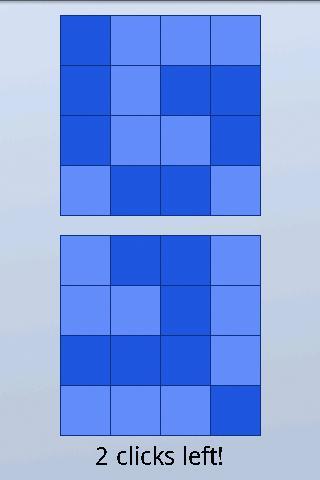 翻转很容易学习,但很难掌握益智游戏。目的是将两个网格与彼此匹配。点击底部网格的正方形,以翻转那个正方形和所有周围的正方形。