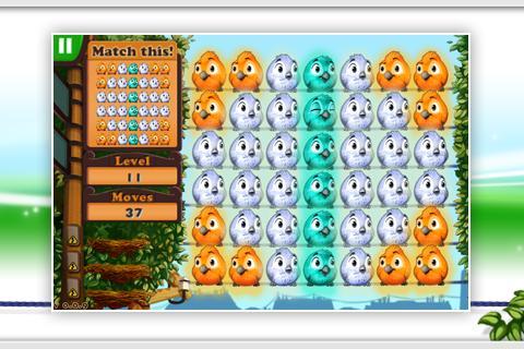 蓬松的鸟很可爱,可爱且易于玩。移动并滑动整个行和柱形成3个或更多类似彩色小鸟的组。