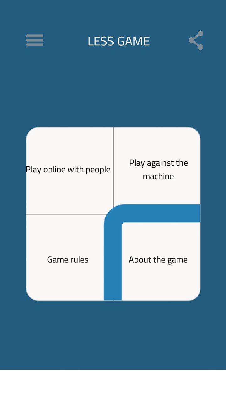 LESS是一款适合两名玩家的全新简单策略棋盘游戏。这是一个简单的游戏, LESS一分钟就可以学会规则。目标是在对手将你的四个棋子移动到你的起始角之前将你的四个棋子移到对手的起始角。