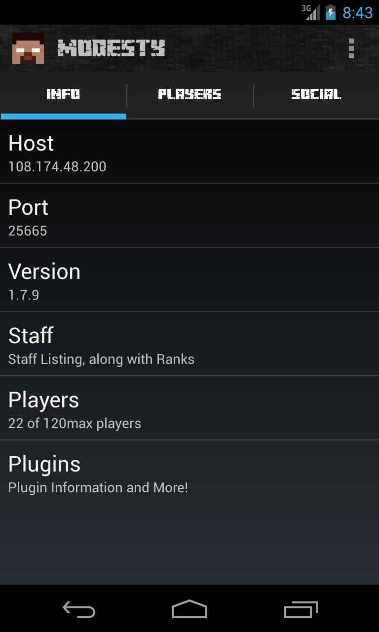借助Android应用程序的Modesty ,您可以随时了解服务器信息,员工更改,目前正在播放用户。