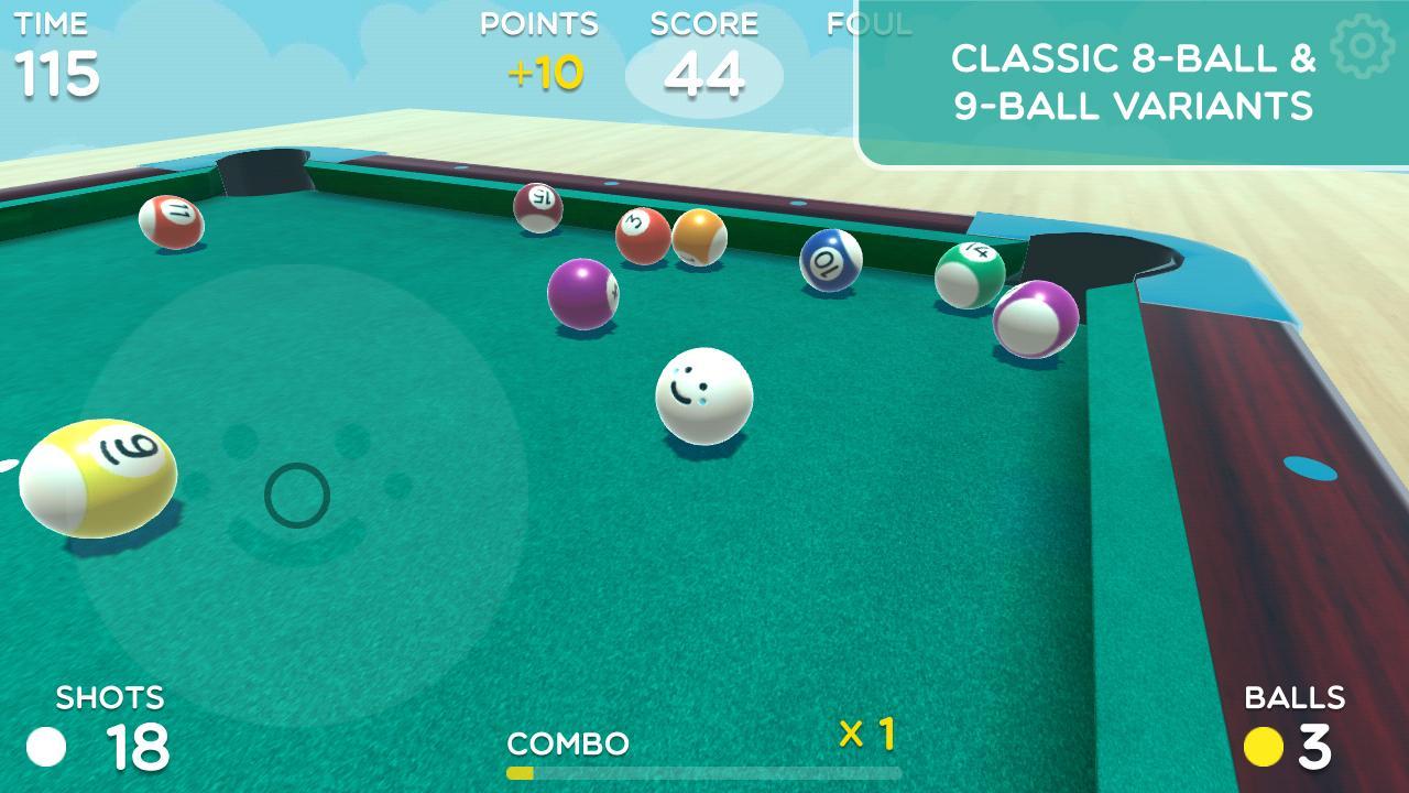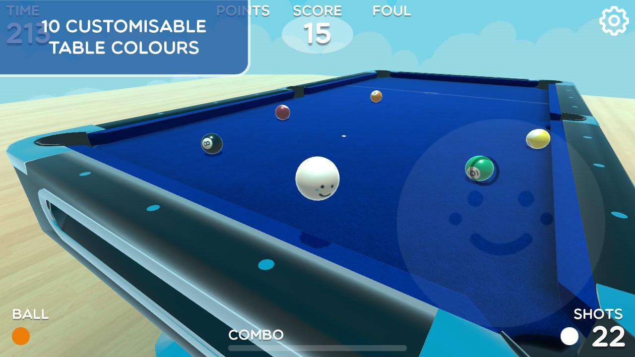• 3 个经典球台、8 球(英国和美国)、9 球和 2 个特殊球台。