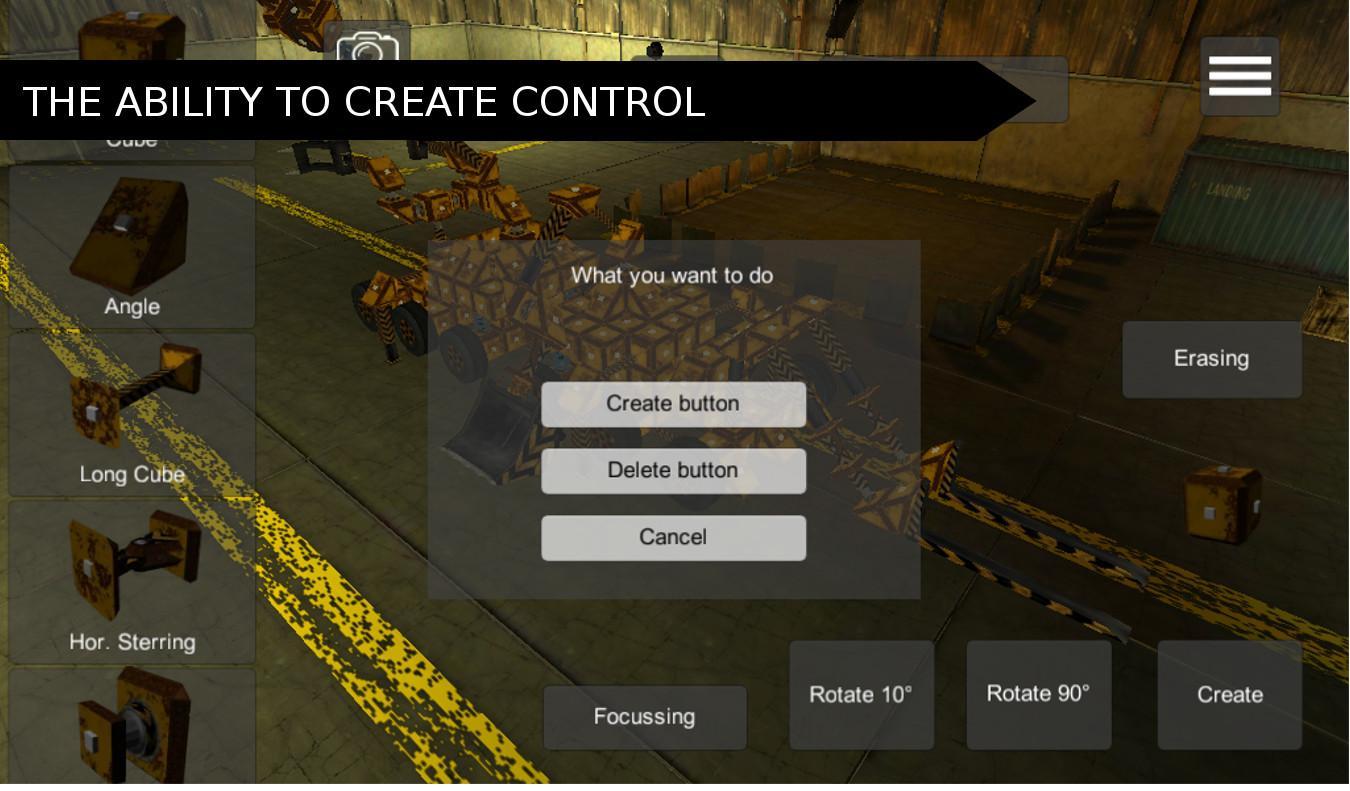 Rustysandbox-这是移动沙盒,您必须不断成为创造力,并为简单问题的非标准解决方案创建机制。您可以绝对构建从简单的装载机和挖掘机到复杂机器人的任何设备。在您的发明的帮助下,您必须抓住并移动负载,挖掘瓦砾,踢足球,甚至抓住真正的飞碟!