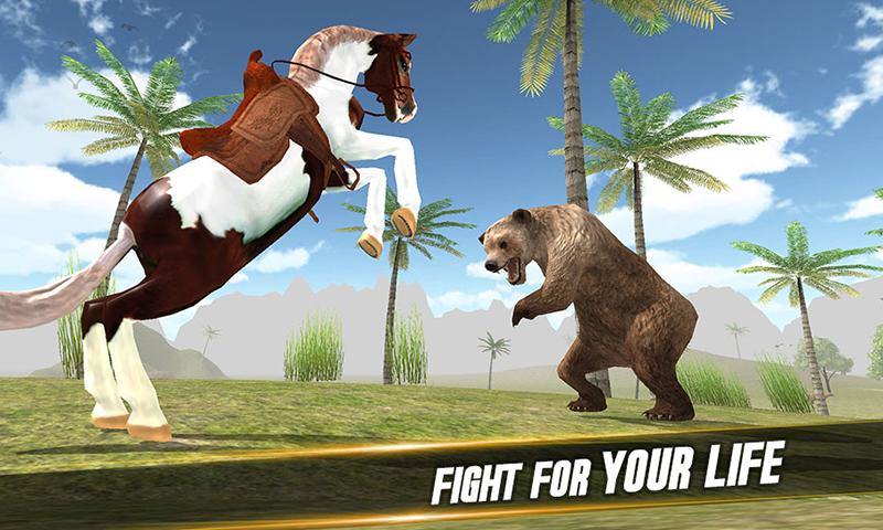 马生存模拟器。攻击和击败野生动物作为愤怒的种马