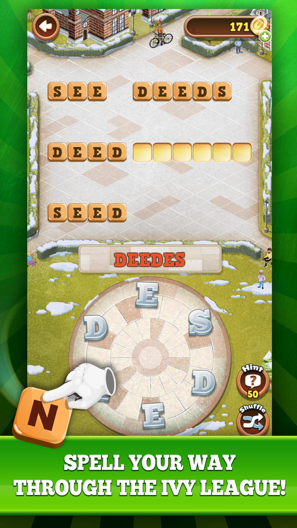 Word U是一个有趣的,新的,字母扭曲的,单词用处。看看您可以从字母池中构建多少个单词,并在享有声望的大学中移动。