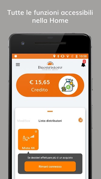 您將直接從智能手機中管理信用buonristoro,並通過在授權的分銷商中插入硬幣和鈔票來對其進行收費。