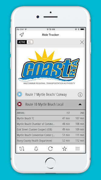 Coast RTA的穿梭跟踪申請。該應用程序包括帶有停止ETA和路線信息的實時穿梭巴士信息。