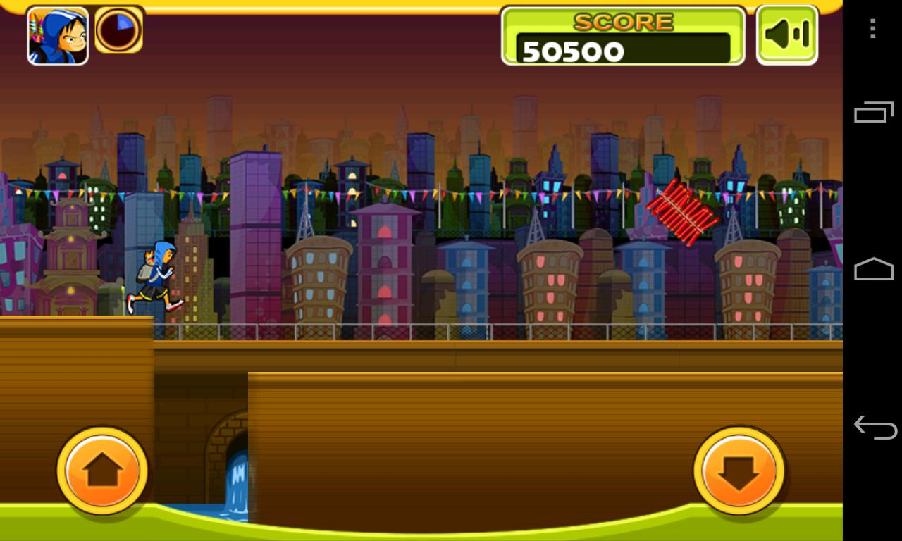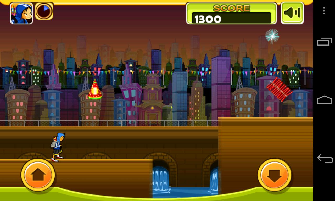 奔跑以點亮街道,奔跑以照亮他們的世界。三兄弟決定跑步並收集餅乾,以慶祝燈光節。幫助他們走出街頭,同時避免了許多障礙。街道上有火,道路上的路障,有限的生活,損失將以失踪的兄弟為標誌。收集火箭以更快地覆蓋距離,並獲得更好的分數,以填補生命欄。根據您的表現,生命欄將幫助您將兄弟帶回奔跑,最終為您帶來額外的生活。開始跑步!