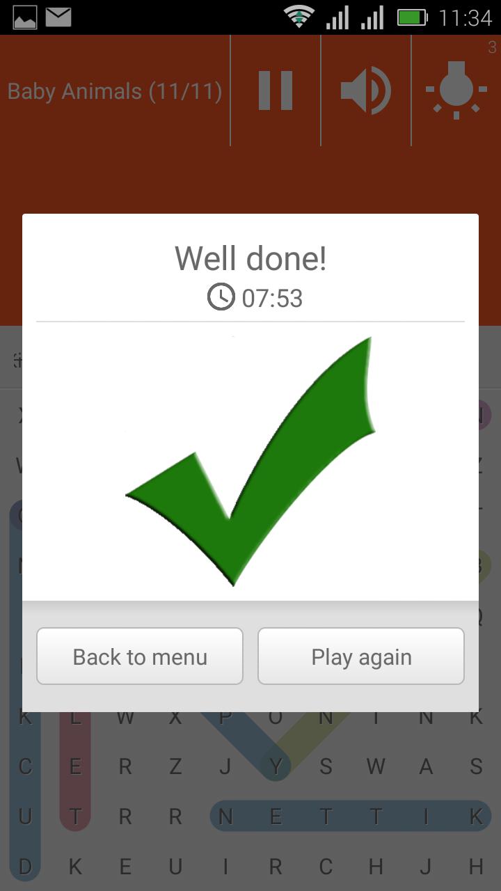 找到單詞遊戲非常容易玩。只需單擊您的應用程序,選擇要播放的類別,選擇難度模式(簡單,中或困難),然後單擊Play圖標。您所要做的就是向左滑動,向右,向上,向下或對角線以突出顯示並選擇搜索的單詞。