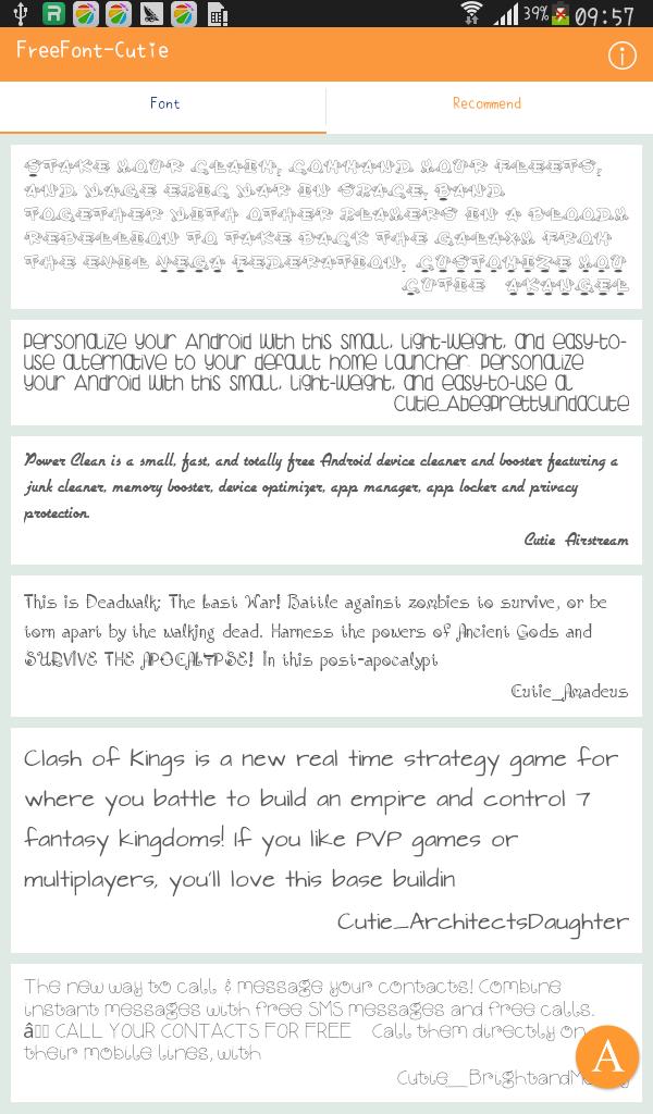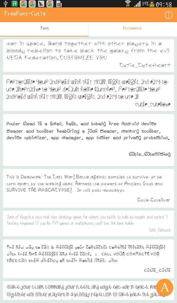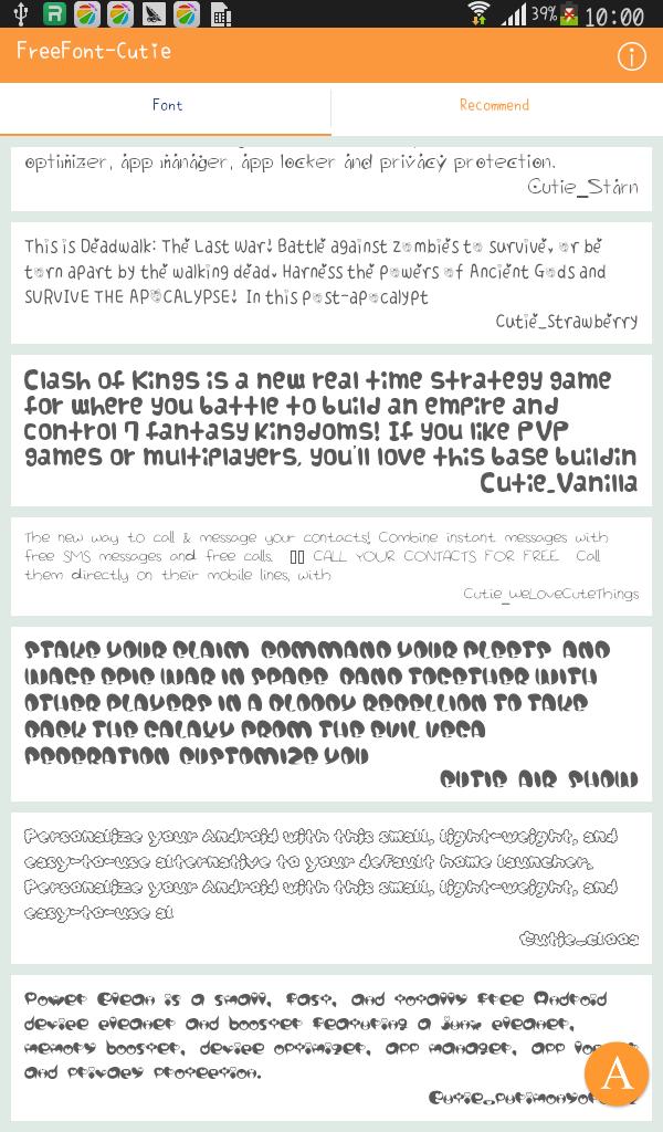 此FreeFont - Cutie Pack是50個字體的選擇,這些字體已優化用於所有Galaxy和Sense 6.0品牌手機,並將為Samsung Galaxy S3,Samsung Galaxy S4的字體提供字體三星Galaxy Core和HTC One。此FreeFont - Cutie Pack並非設計為具有root的Android字體,並且不需要root許可即可更改字體,也不需要您重新啟動手機。確保您的手機可以更改其字體。在設備設置的顯示部分中查找字體樣式選項。