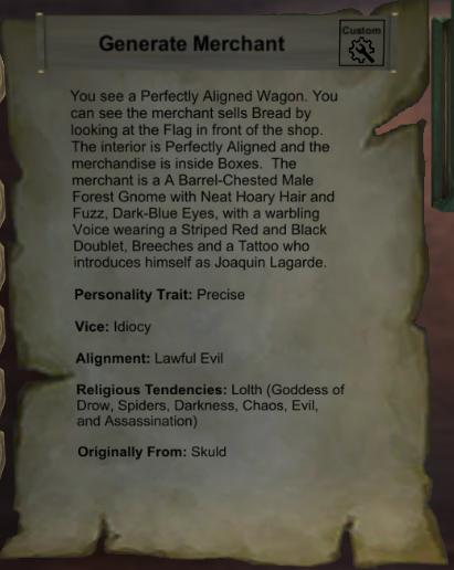 您是否曾經想成為總經理,但是很難想到當場詳細的角色和地方?好吧,這個應用程序不再可以幫助您當場提供高度詳細的NPC,商人,環境,任務,小人,場所和城鎮。即使您是經驗豐富的通用汽車,該應用程序仍然會使生成人員和地方更快,更容易。即使該應用程序針對地牢和龍的目標,該應用程序仍然可用於GMS播放其他幻想桌面RPG(例如Pathfinder)。