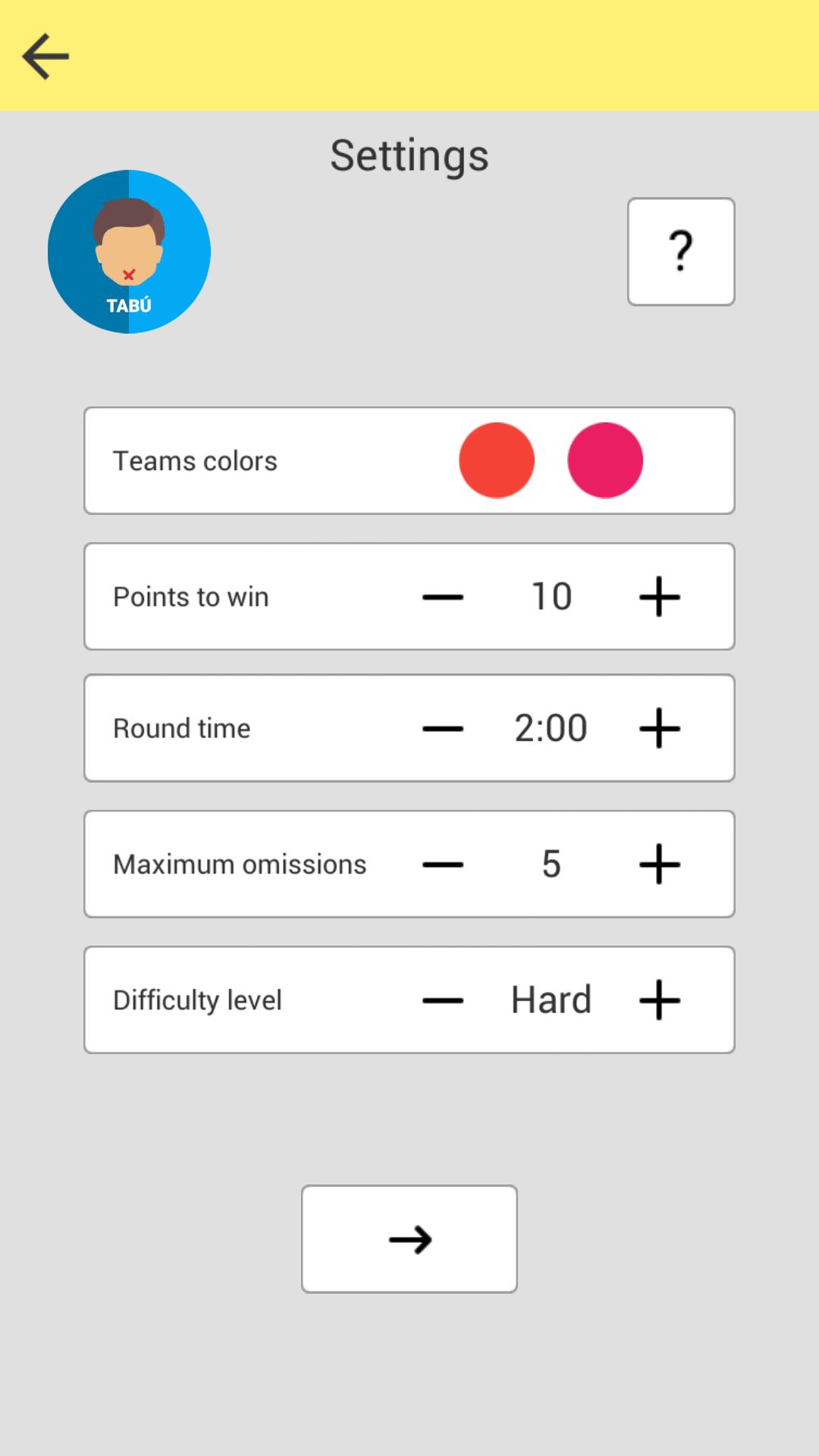 禁忌:小組比賽。團隊的球員猜測隊友描述的單詞。不能使用禁止的單詞或手勢。首先獲得固定命中率的球隊。