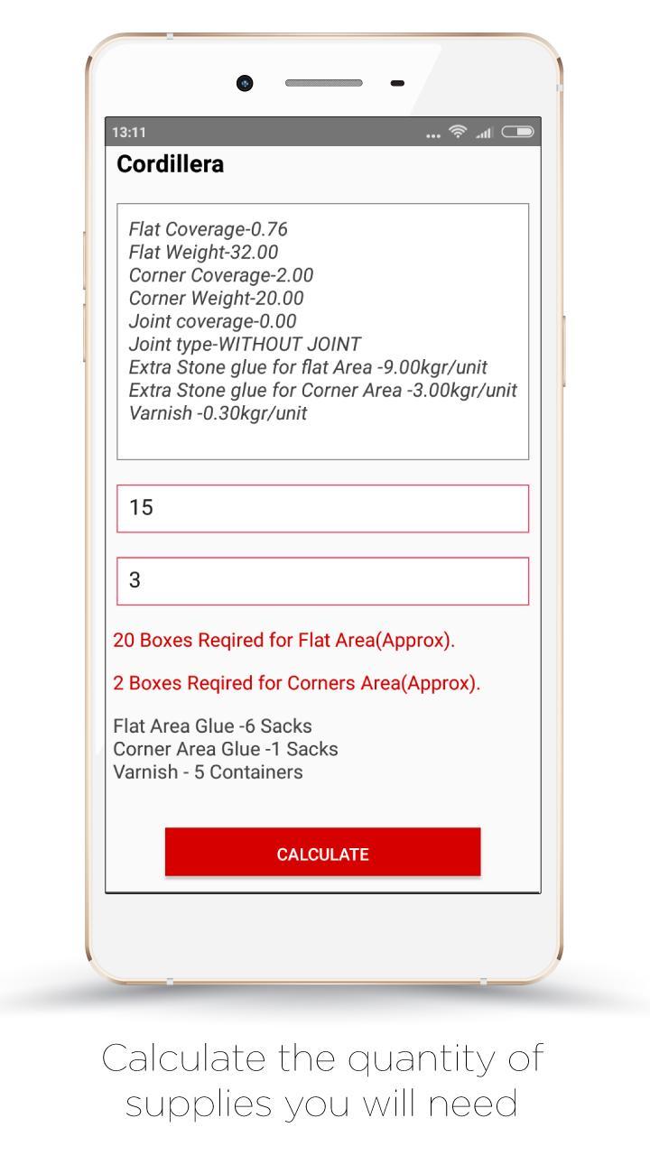 - 嘗試裁縫製作的計算器,並獲得可能需要的石頭,膠,灌漿和清漆的估計量。