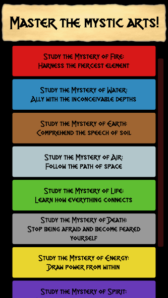 Mighty Mage是一次文字冒險(CYOA)和開放世界角色扮演遊戲,將使您迷戀幾個小時。當您瀏覽這個互動小說的世界並選擇自己的冒險時,您會聽到原始的獨特分數 -專門為該法師RPG創作的音樂。您將有機會學習不同的魔術學校,體驗史詩般的旅程,並使用強大的魔法咒語擊敗敵人。