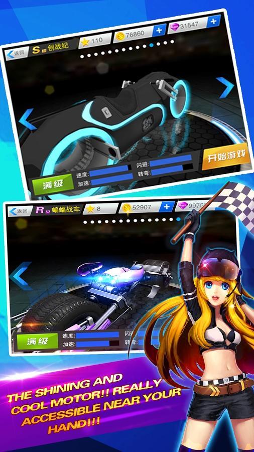 - 小型遊戲記憶,出色的3D引擎,摩托車上的酷3D圖形!