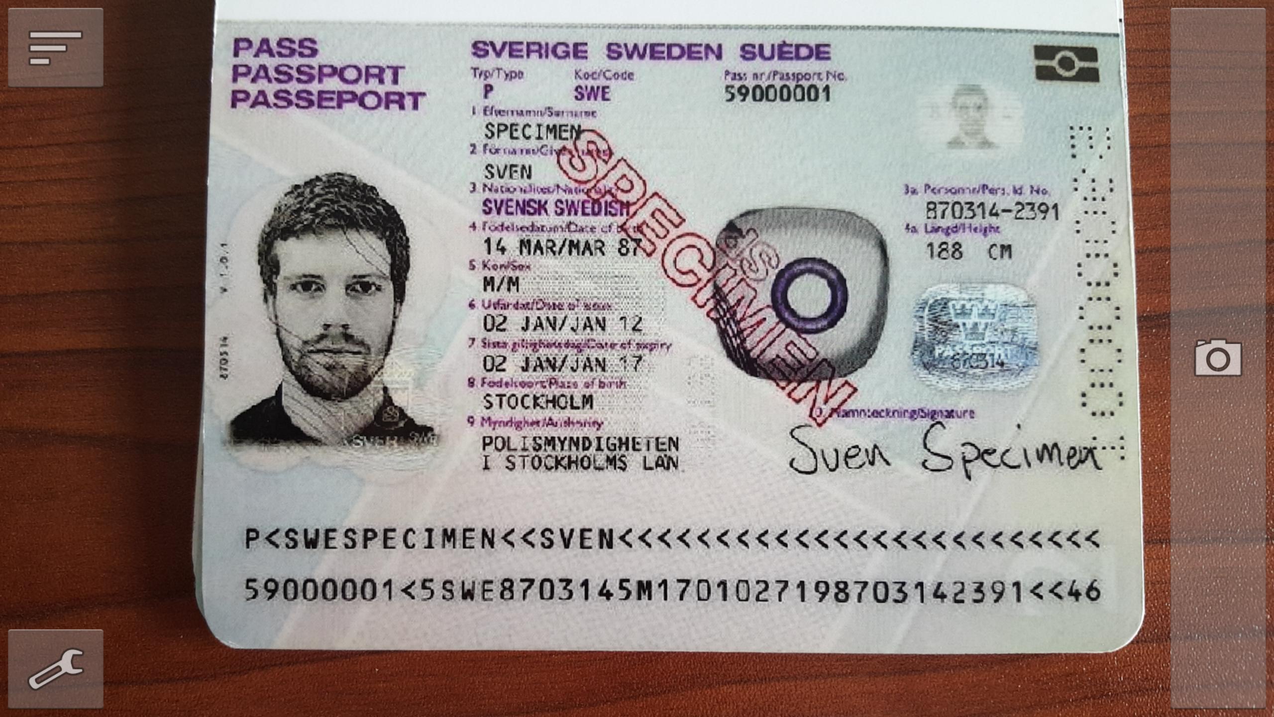 MRZ Recognition應用程序展示了Smart 3D OCR MRZ技術的功能,以識別機器可讀區(MRZ)的文檔。我們使用我們的技術來識別VideoStream -Smart 3D OCR中的文本數據,該數據允許僅使用設備的重新設備(而無需將任何數據發送到遠程服務器發送),允許使用移動設備相機捕獲的照片和視頻識別數據。該申請支持符合ISO/ICAO(IEC 7501-1/ICAO文檔9303 ISO)標準的文檔的高速識別。