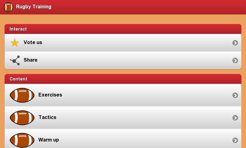 該應用程序是足球,網球,槳網,籃球,家庭健身房,板球,騎自行車,高爾夫和拳擊等一系列體育訓練應用程序的一部分。現在下載此Rugby Training免費應用程序在您的手機或平板電腦設備上,成為橄欖球冠軍。