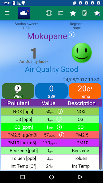 該應用程序中顯示的數據是從南非的空氣質量監測站獲得的。