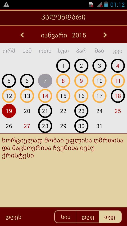 格魯吉亞語言的正統日曆