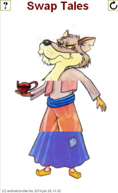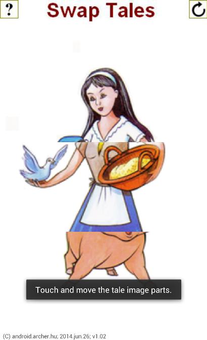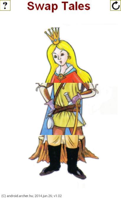 該應用程序包含16個童話角色。人物頭,軀乾和腿部的截面可以更改為不同的。右上方按鈕會生成隨機的故事字符。