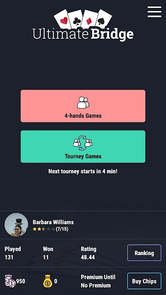 - 加入個人或配對錦標賽(重複的橋樑或MP評分系統)