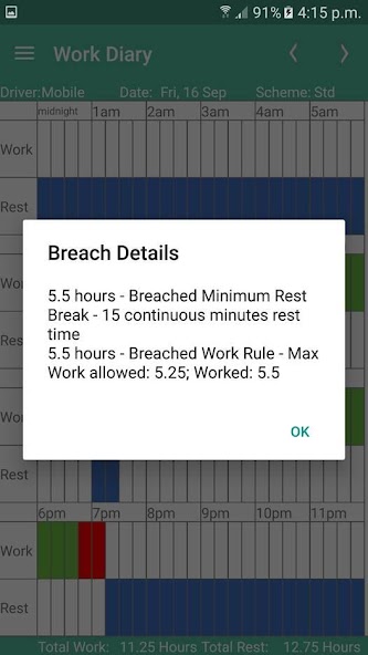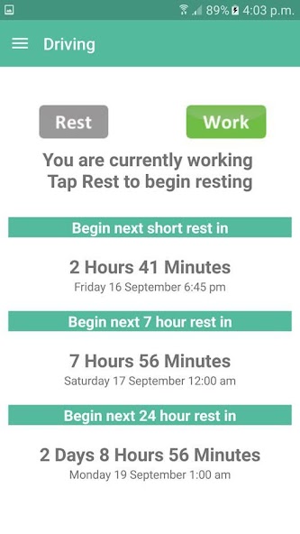 Work Diary Mate是最簡單,最直觀的工作日記助理和登錄書籍檢查員。它基於重型車輛的澳大利亞國家駕駛員工作日記,因此您將知道如何立即使用它。它是按照卡車司機的需求進行設計的,將竭盡所能,並猜測維護您的工作日記。只需在每日工作日記工作表上的工作或休息區域敲擊並滑動,如果發生漏洞,您將自動通知您。請注意:此產品是工作日記助理,而不是電子工作日記(EWD)。如果您使用此產品,您仍然需要填寫紙張日記。